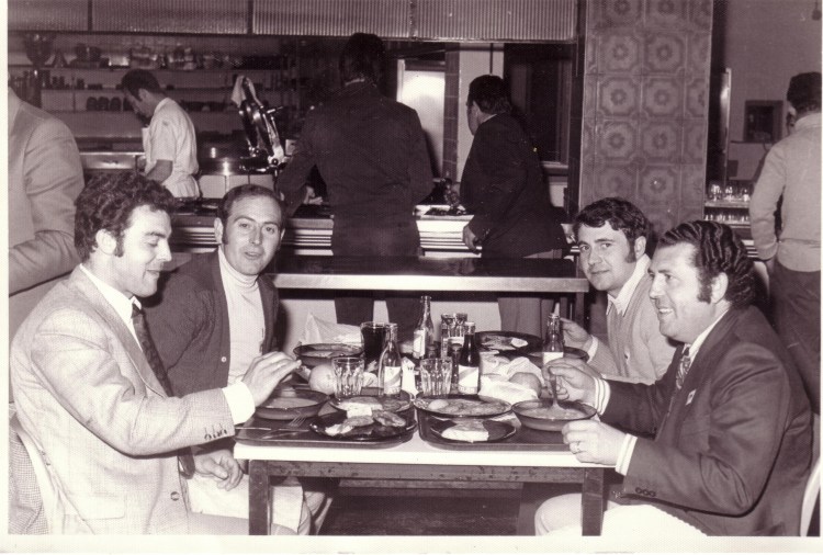 Viaje de los tambores de Calanda a Madrid en 1974 (Miguel Espada, Miguel Magrazó, Pascual Palos y Manuel Dueñas)